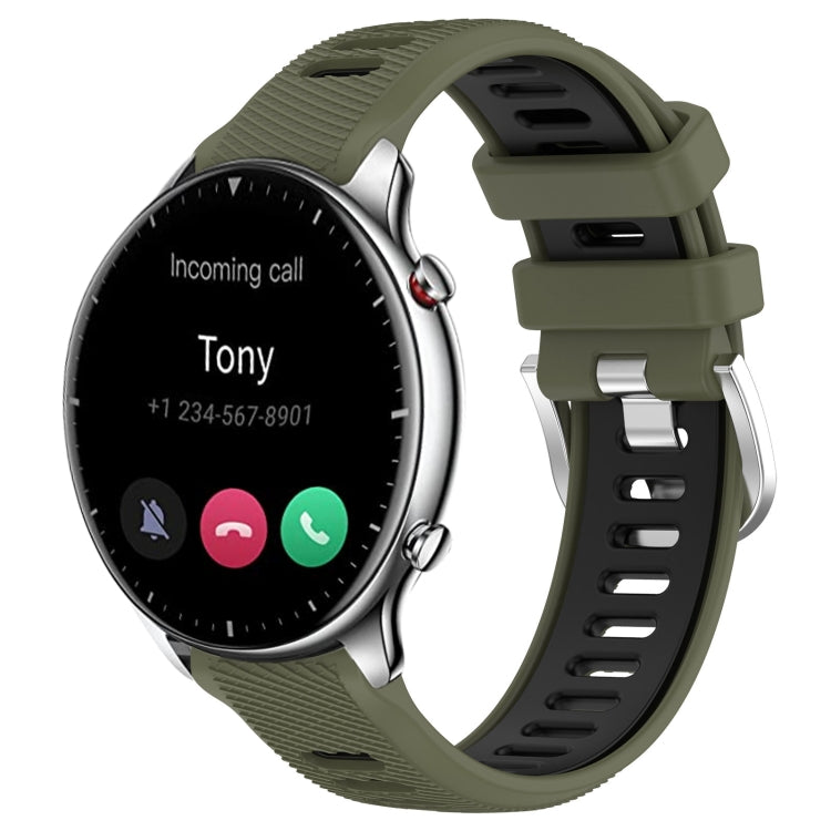Correa de Reloj Amazfit GTR 3 22mm Silicona Dos Colores con Hebilla de Acero (Verde Militar + Negro)