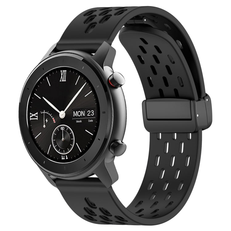 Correa de Reloj para Amazfit GTR 42mm 20mm Silicona con Cierre Magnético Plegable (Negro)