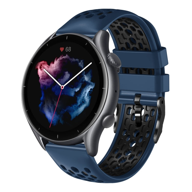 Correa de Reloj para Amazfit GTR 3 22mm Silicona Transpirable Dos Colores (Azul Medianoche + Negro)