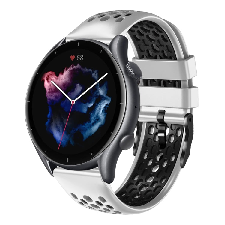 Para Amazfit 3 22mm Correa de Reloj de Silicona Transpirable de Dos Colores (Blanco + Negro)