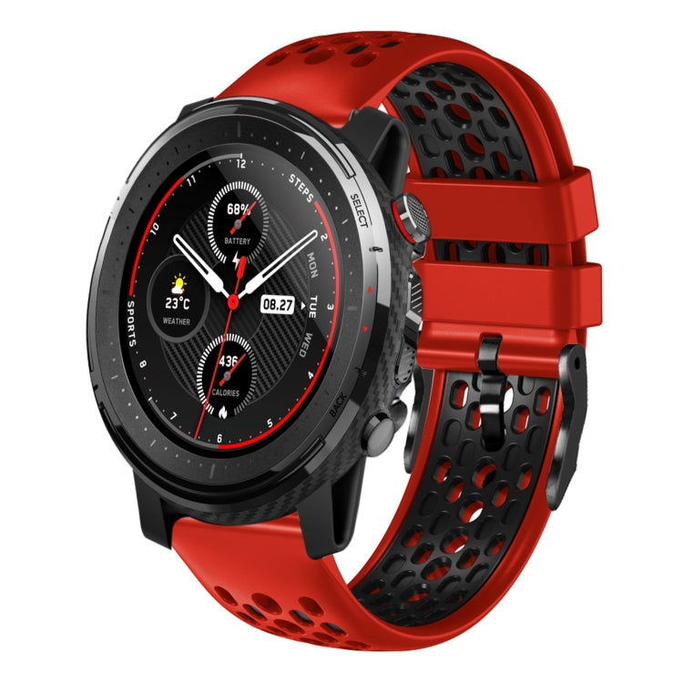 Correa de Reloj Amazfit Stratos 22mm Silicona Transpirable Dos Colores (Rojo + Negro)