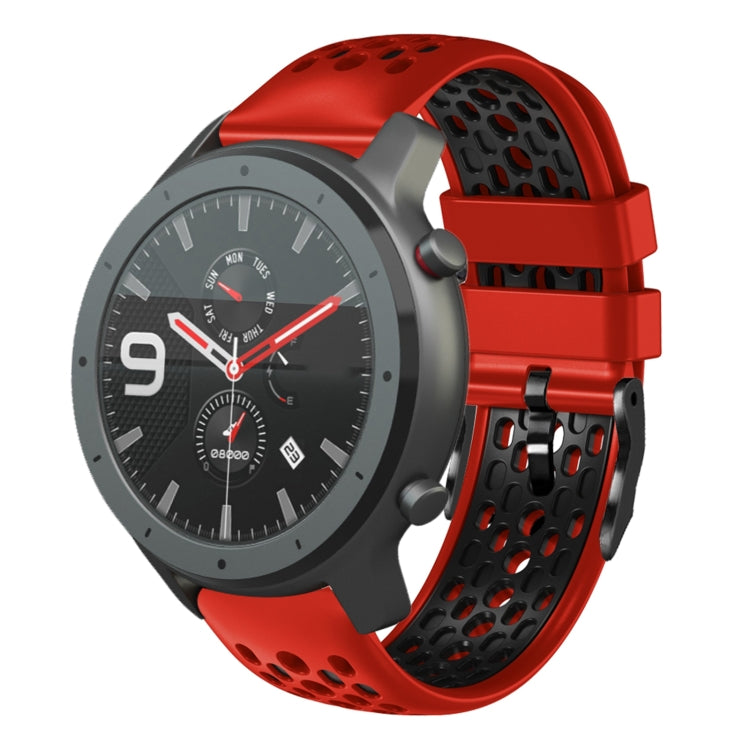 Correa de Silicona para Amazfit GTR 47mm 22mm Transpirable Dos Colores (Rojo + Negro)