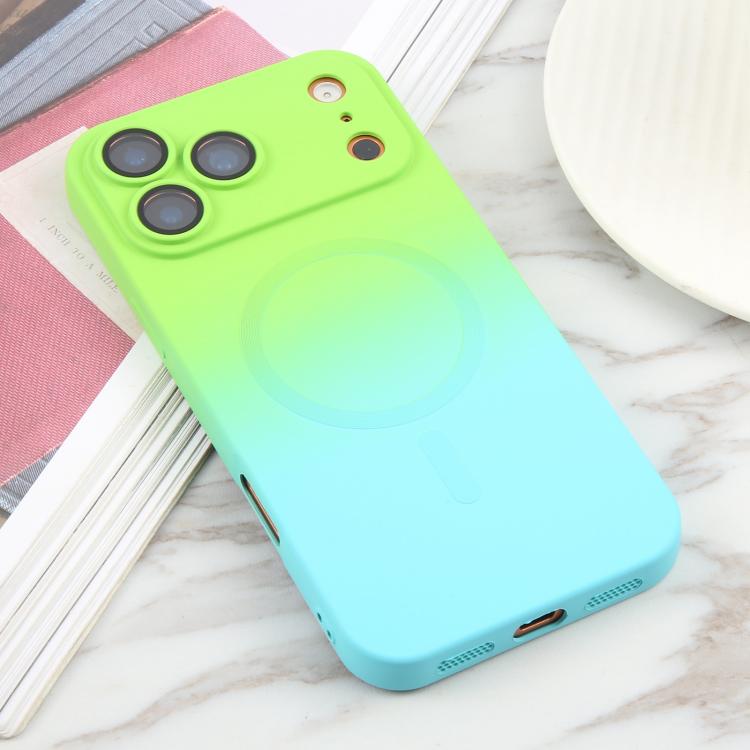 Funda de silicona líquida TPU con degradado MagSafe para iPhone 17 Pro (azul cian)