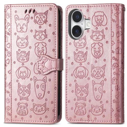 Funda de piel con estampado de gato y perro para iPhone 17 (oro rosa)