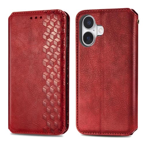 Funda de cuero magnética con diseño de cuadrícula cúbica para iPhone 17 (roja)