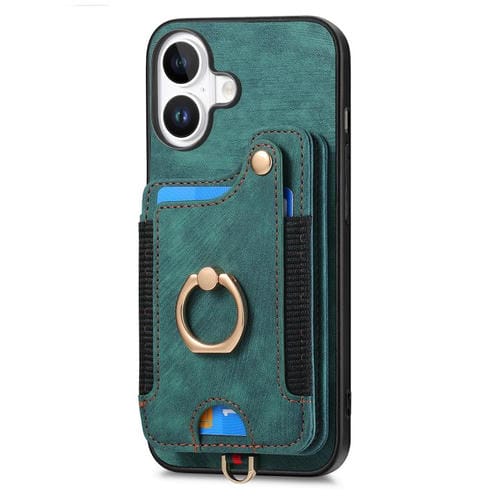 Funda tipo cartera con anillo multitarjeta y diseño retro para iPhone 17 (verde)