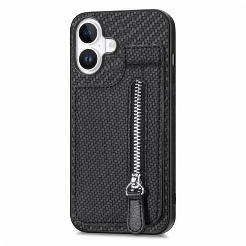 Funda de fibra de carbono con cremallera vertical para iPhone 17 (negra)