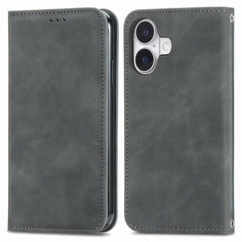 Funda de cuero con tapa magnética y diseño retro para iPhone 17 (gris)