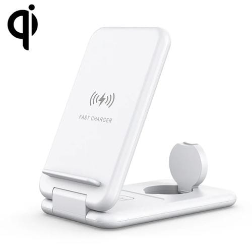 Cargador inalámbrico 3 en 1 plegable Qi 15W soporte para iPhone iWatch AirPods (White)