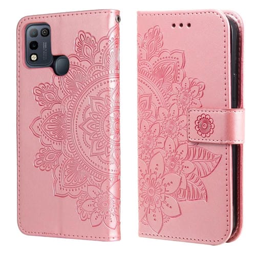 Funda Cuero PU Estampado 7-Petal Flores para Infinix Smart 5 Hot 10 Lite X657 con Soporte y Tarjetero (Oro Rosa)