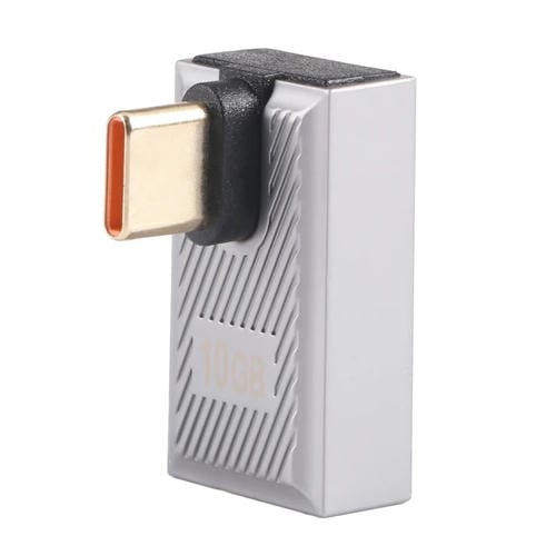 - 1x Adaptador de Carga USB-C Macho a USB Hembra 10 Gbps Curva Media 90 Grados (Plateado)
