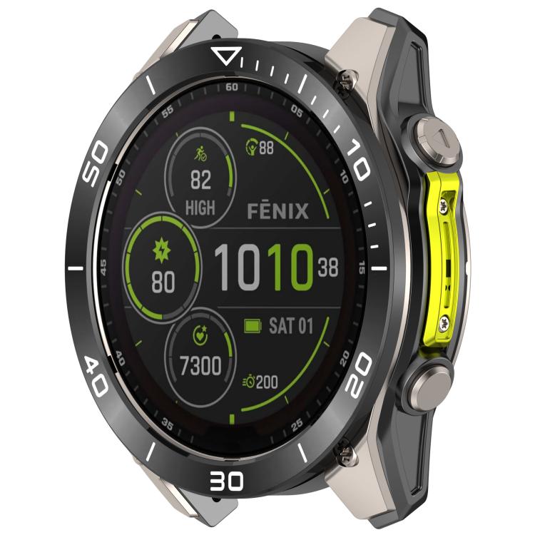 Anillo protector de acero inoxidable para reloj Garmin Tactix 8 Solar de 51 mm con zona horaria (negro y blanco)