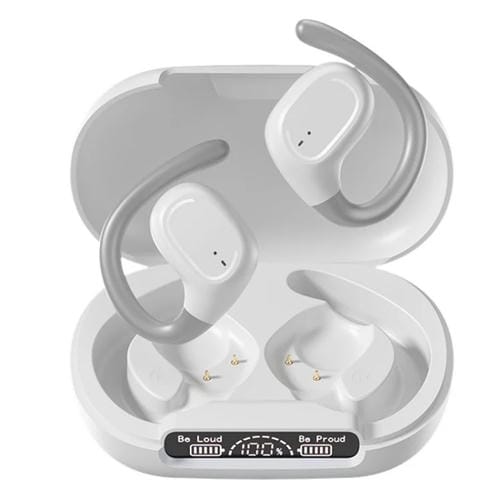 Auriculares inalámbricos S200 Bluetooth 5.3 deportivos con micrófono gancho para oreja pantalla LED (Blanco)