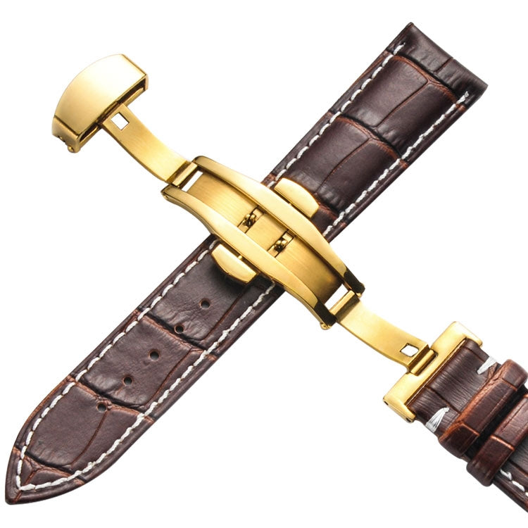 Banda de reloj de hebilla de mariposa de cuero de cuero de vapor de 18 mm (líneas blancas marrones)
