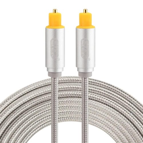 - 1x Cable de Audio Óptico Digital EMK 3M OD4.0MM Chapado en Oro con Cabeza Metálica Tejida Toslink Macho a Macho (Plateado)