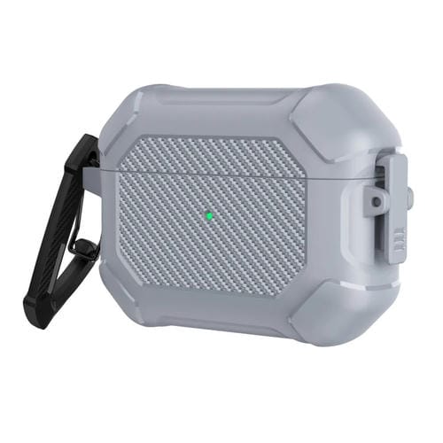 Funda Protectora para Auriculares Carbon Brazing Dimension TPU + PC con Bloqueo de Interruptor y Mosquetón para AirPods Pro (Gris)