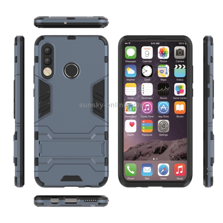 Carcasa de PC y TPU para Huawei P30 Lite con Soporte a Prueba de Golpes (Azul Marino)