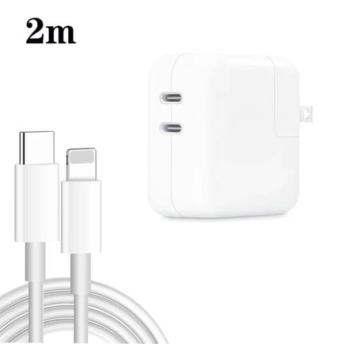 Cargador 35W PD3.0 USB-C Tipo-C doble puerto con cable 2m Tipo C a 8 pines (Blanco)