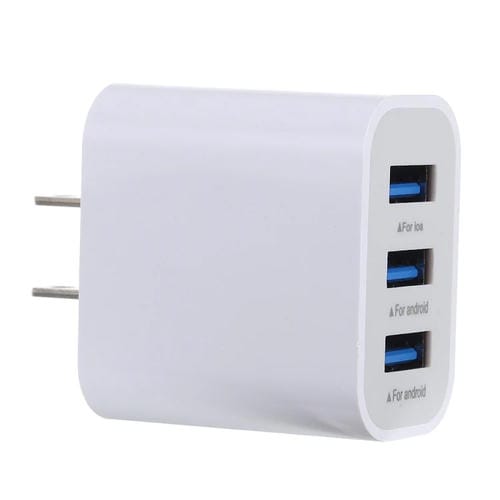 Cargador de viaje con cargador rápido 3 puertos USB 3.1 A enchufe EE. UU. (Blanco)