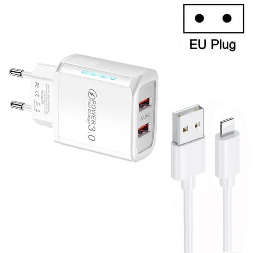 Cargador USB QC3.0 Doble Puerto 36 W con Cable USB a 8 Pines (Blanco)