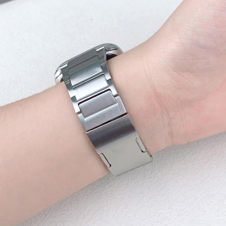 Correa de acero inoxidable con hebilla lateral desmontable y tres cuentas para Apple Watch de 46 mm, 49 mm, 45 mm y 44 mm (plateada)