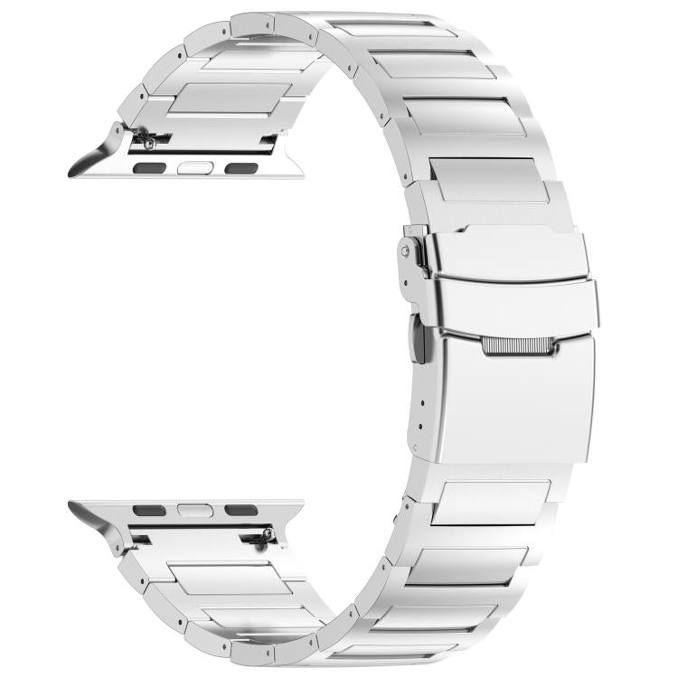 Correa de aleación de titanio (plateada) con cierre de seguridad de liberación rápida en forma de I para Apple Watch de 46 mm / 49 mm / 45 mm / 44 mm