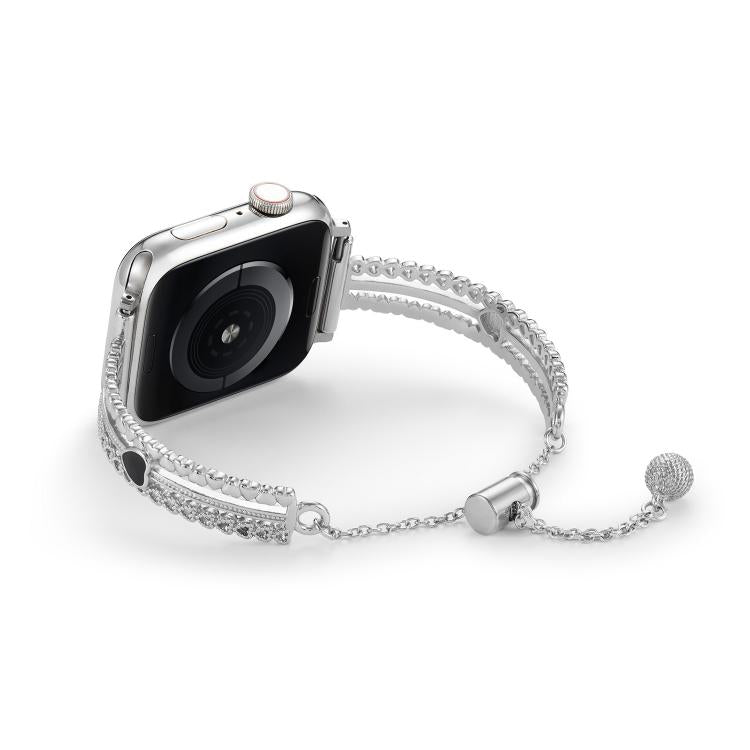 Correa de aleación de zinc con diseño de piedra blanca y amor para Apple Watch de 42 mm, 41 mm, 40 mm y 38 mm (plata)
