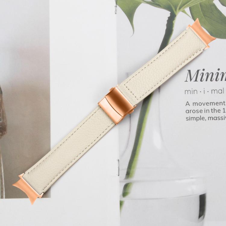 Correa de cuero con hebilla trasera de tortuga en oro rosa y textura de lichi para Samsung Galaxy Watch 7 (40/44 mm) (blanco cremoso)