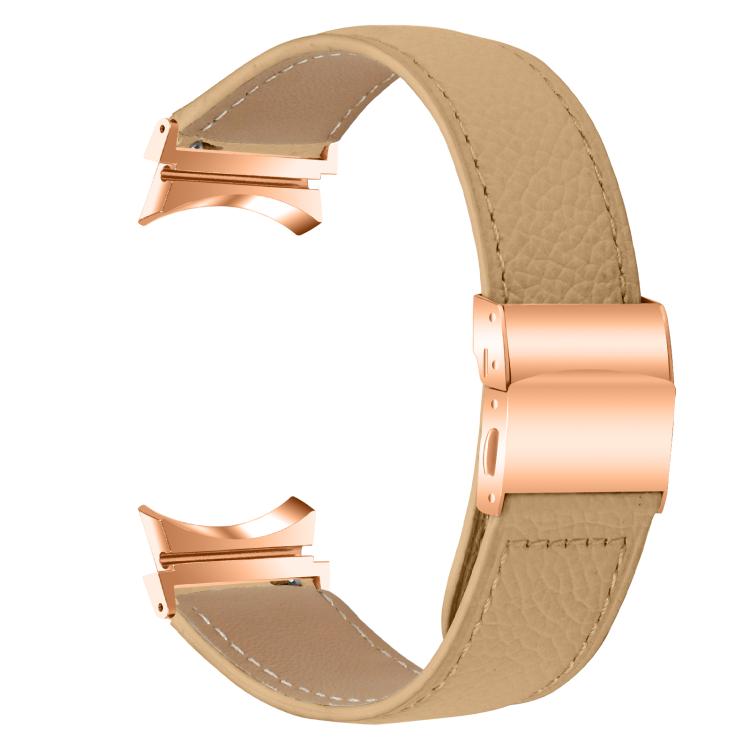 Correa de cuero con hebilla trasera de tortuga en oro rosa y textura de lichi para Samsung Galaxy Watch 7 (40/44 mm) (Camel)