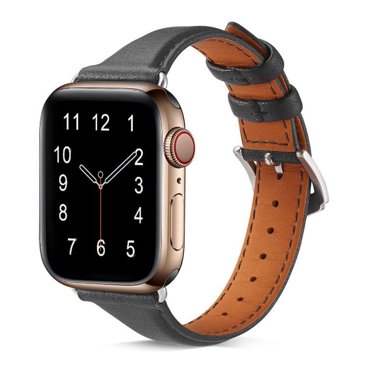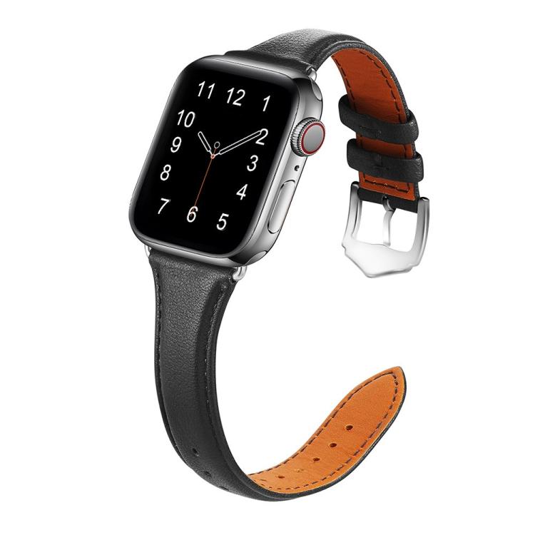Correa de cuero genuino con hebilla pequeña para Apple Watch de 46 mm, 49 mm, 45 mm y 44 mm (negra)