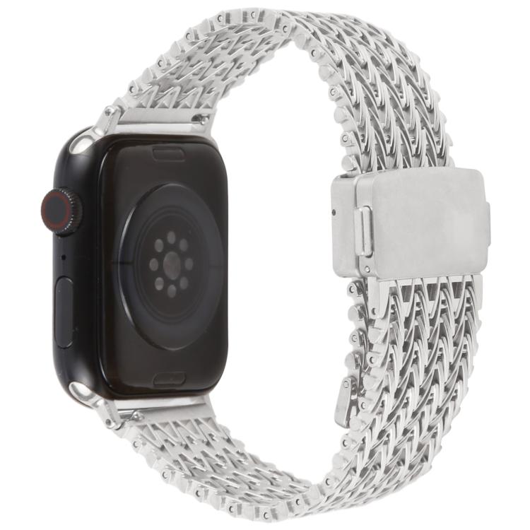 Correa de malla de acero con cierre magnético para Apple Watch de 46 mm, 49 mm, 45 mm y 44 mm (plateada)