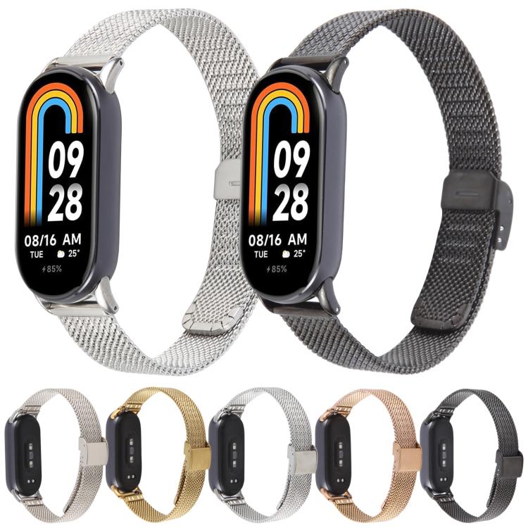 Correa de metal milanesa con hebilla integrada para Xiaomi Smart Band 9/8 (dorada)