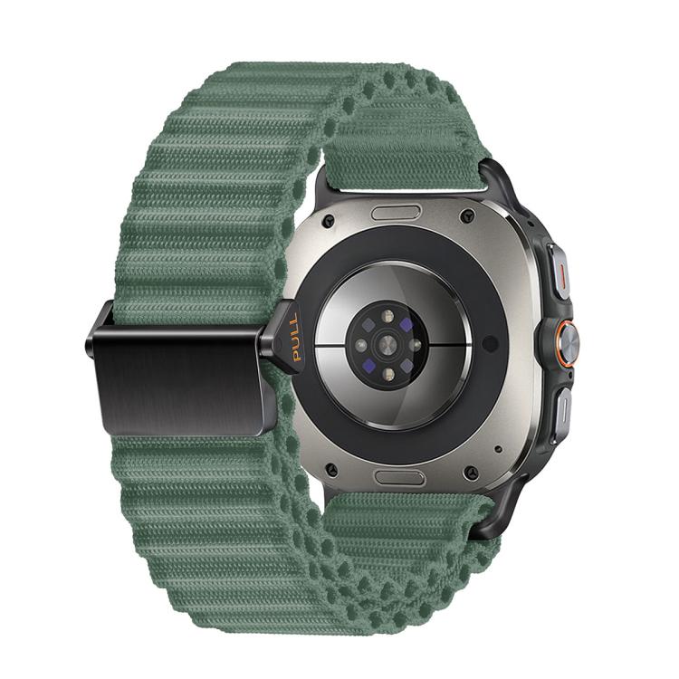 Correa de nailon con cierre de velcro para Samsung Galaxy Watch Ultra de 47 mm con película curva 3D (verde militar)