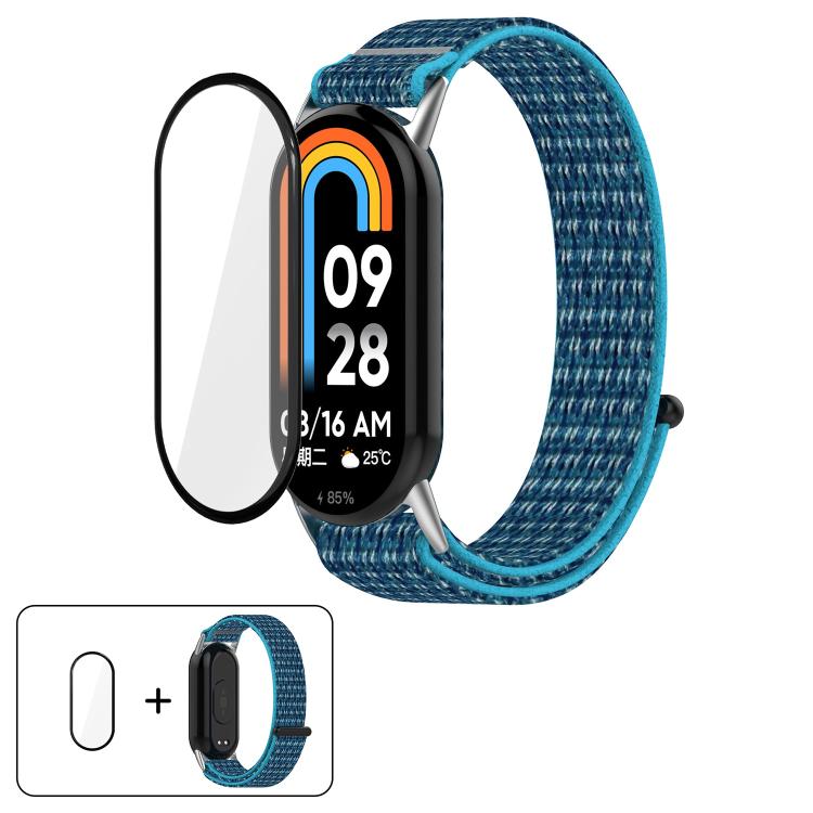 Correa de nailon con cierre de velcro y película curva 3D para Xiaomi Smart Band 9/9 NFC (azul marino)