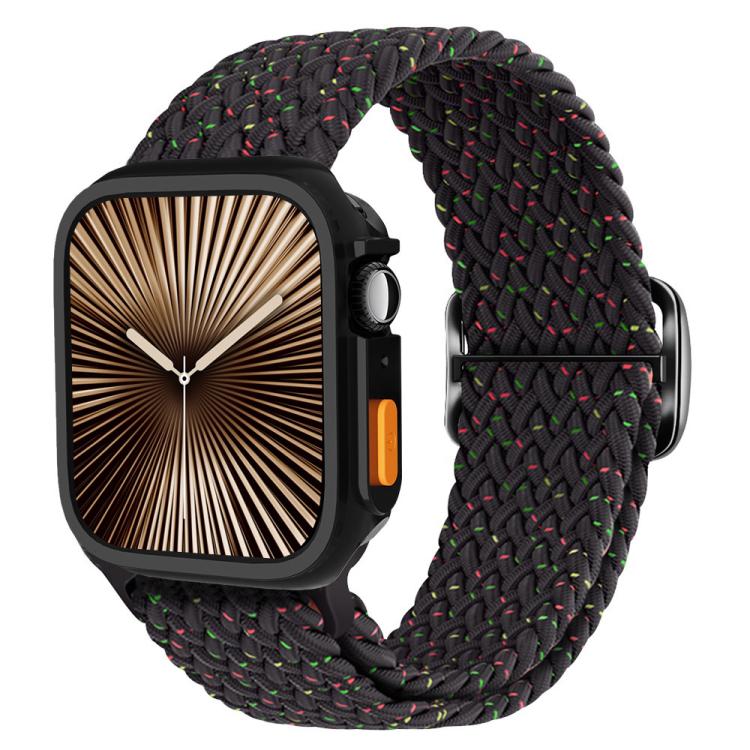 Correa de nailon con hebilla de escalera para Apple Watch Series 10/11 de 46 mm con funda de TPU (negro Starlight)