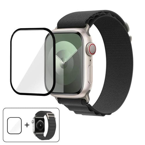 Correa de nailon con hebilla y película curva 3D para Apple Watch Series 10 de 42 mm (gris oscuro)