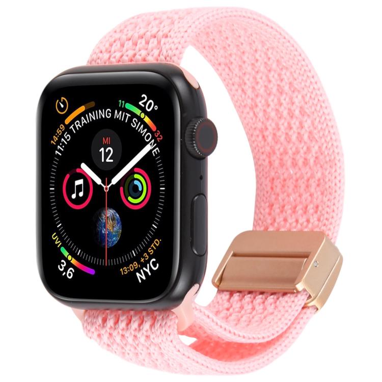 Correa de nailon transpirable con hebilla magnética para Apple Watch de 42 mm, 41 mm, 40 mm y 38 mm (rosa brillante)