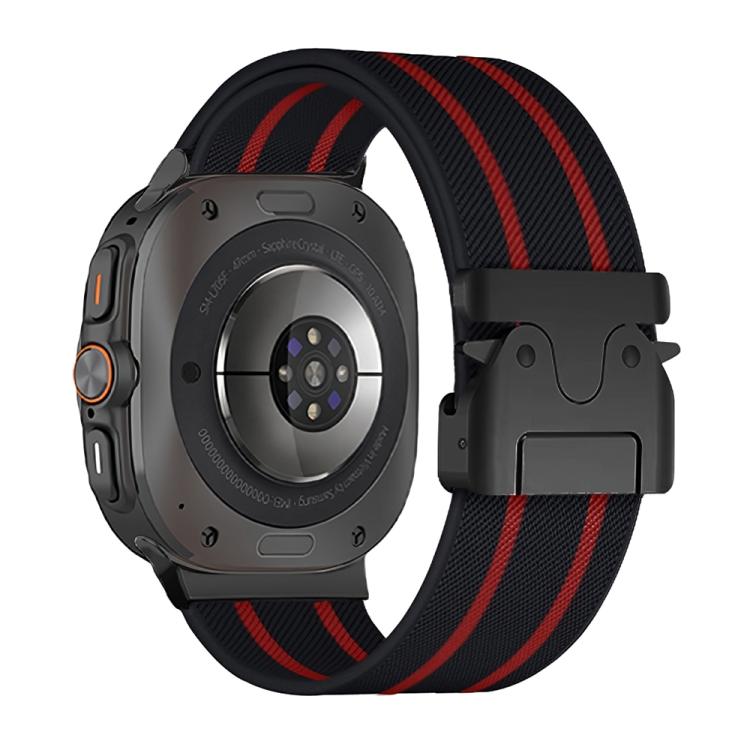 Correa de nailon trenzada elástica con hebilla de paracaídas para Samsung Galaxy Watch Ultra de 47 mm (negro y rojo)