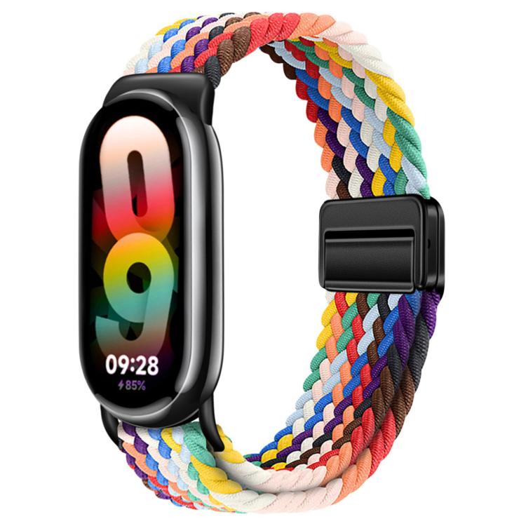 Correa de nailon trenzado con hebilla magnética para Xiaomi Smart Band 10/9/8 (Arcoíris)