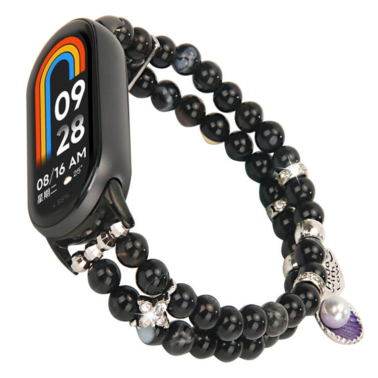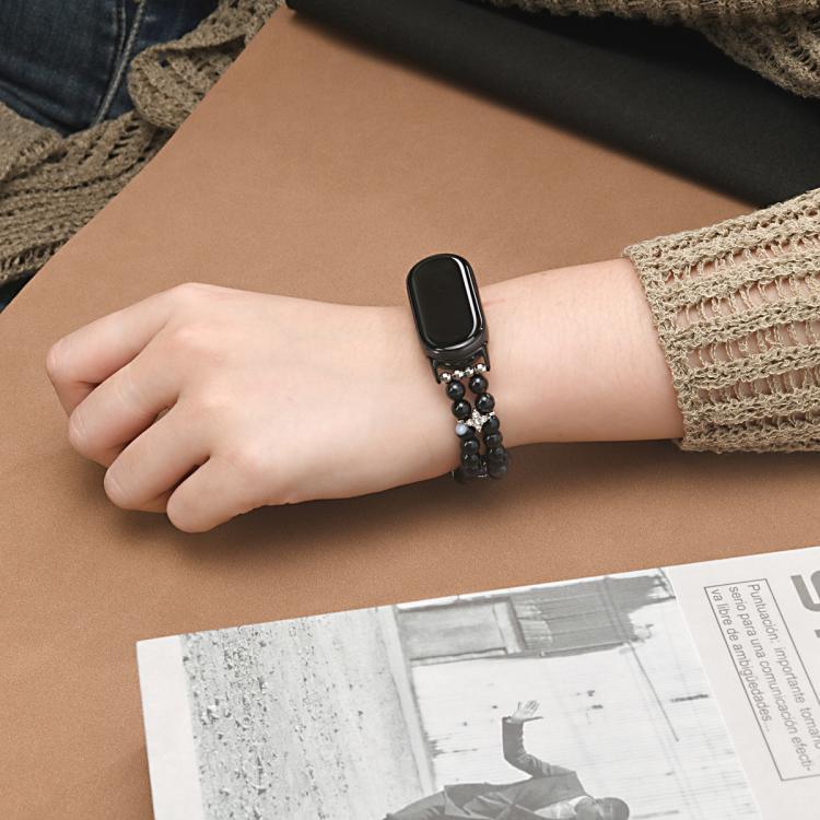 Correa de reloj con cadena de cuentas de doble fila para Xiaomi Smart Band 10/9/8 (negra)