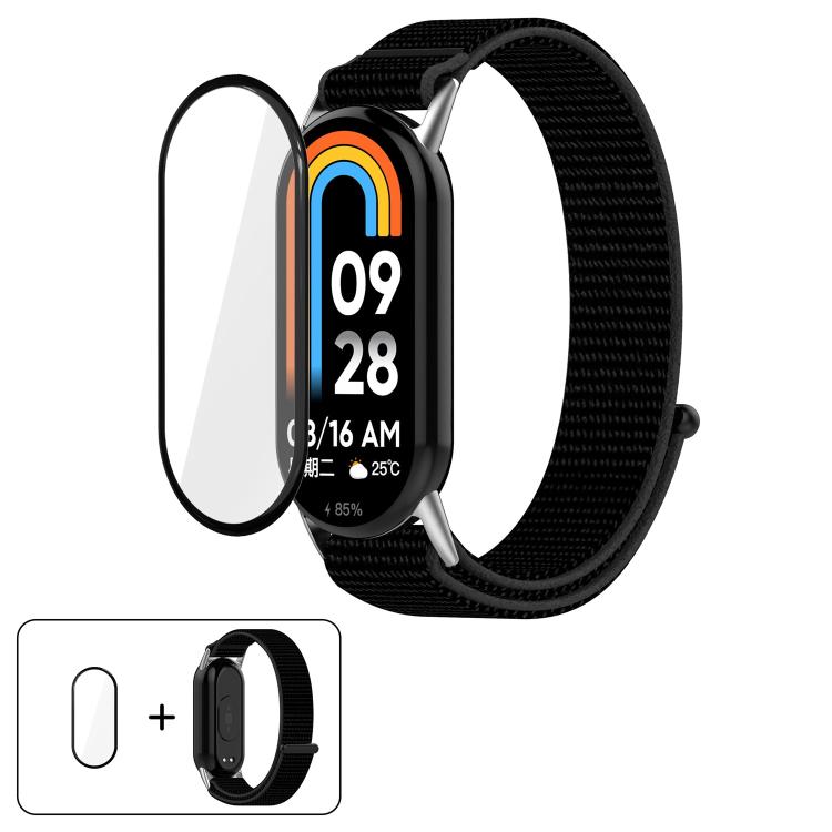 Correa de reloj con cierre de velcro de nailon y película curva 3D para Xiaomi Smart Band 9/9 NFC (negra)
