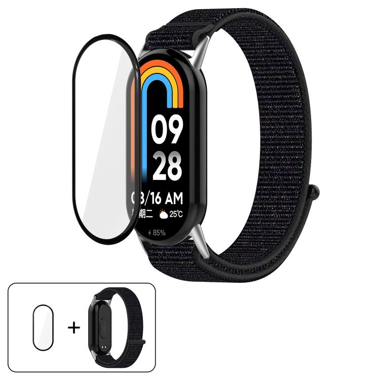 Correa de reloj con cierre de velcro de nailon y película curva 3D para Xiaomi Smart Band 9/9 NFC (negro oficial)