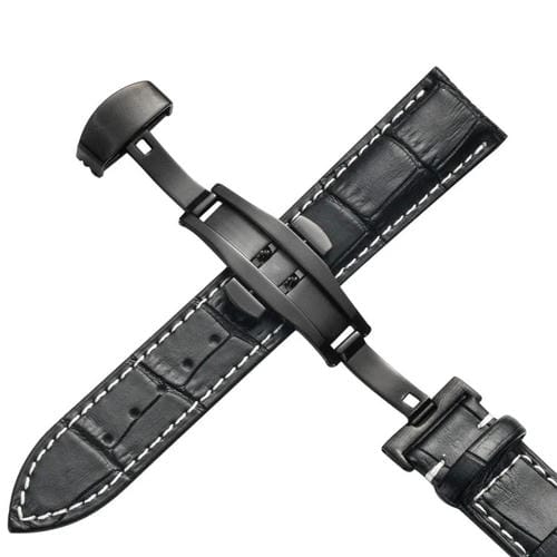 Correa de Reloj Piel de Vaca 20mm con Hebilla de Mariposa (Negra Líneas Negras y Blancas)