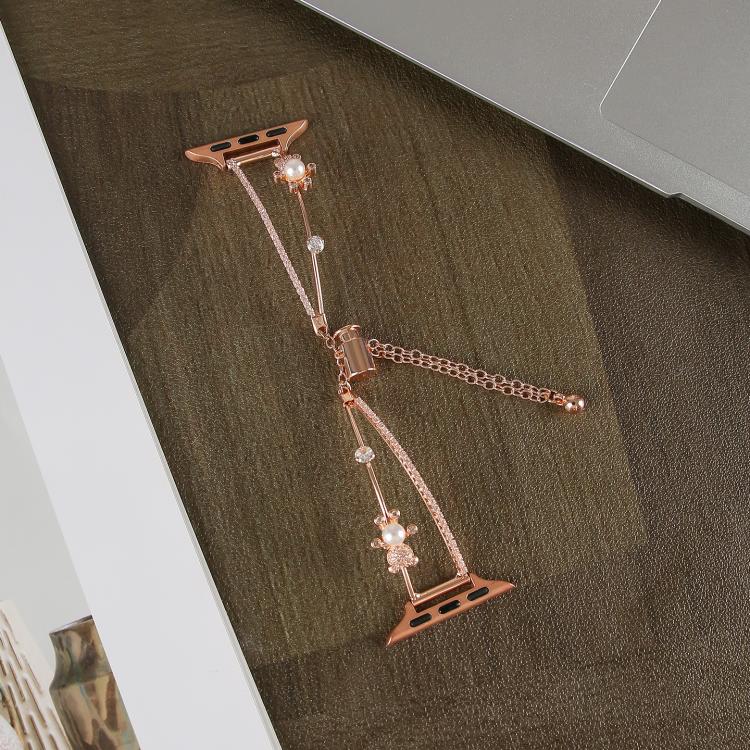 Correa de reloj con incrustaciones de cobre y circonitas de oso para Apple Watch de 42 mm, 41 mm, 40 mm y 38 mm (oro rosa)