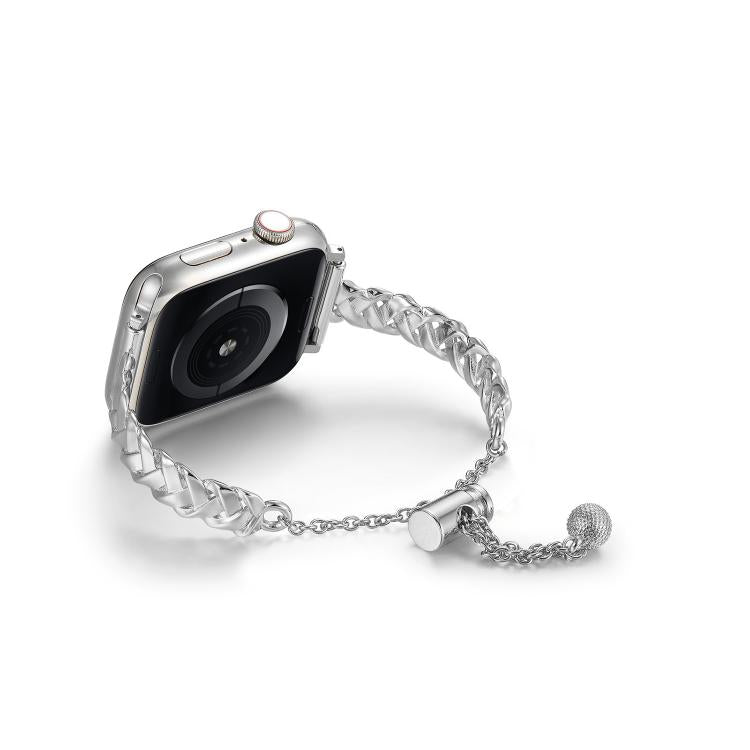 Correa de reloj de aleación de zinc brillante y trenzada para Apple Watch de 42 mm, 41 mm, 40 mm y 38 mm (plateada)