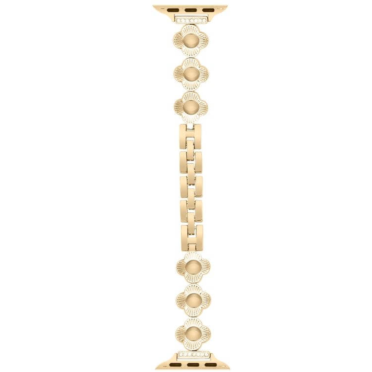 Correa de Reloj de Cadena de Metal con Liberación Rápida y Trébol para Apple Watch Series 3 42mm (Dorada)