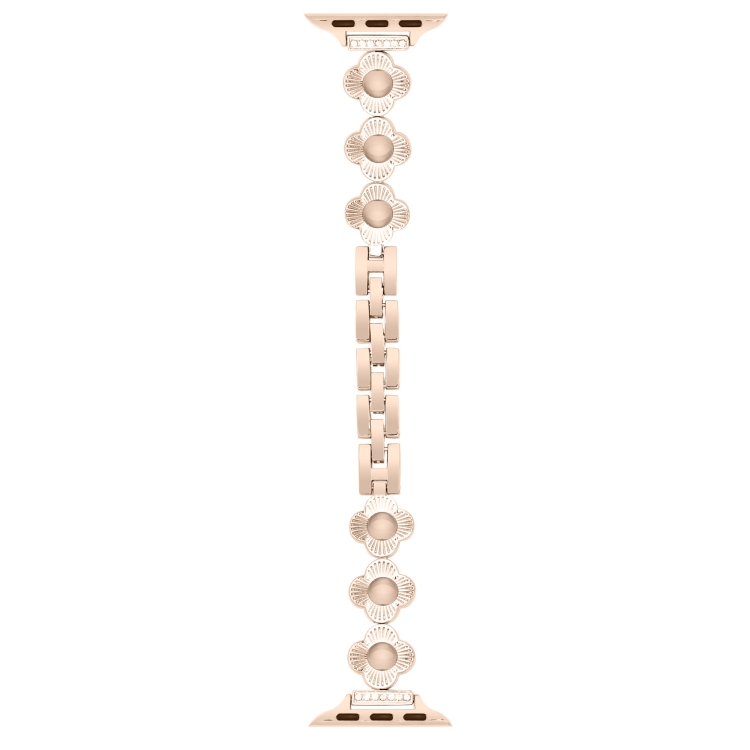 Correa de Reloj de Cadena Metal Liberación Rápida Trébol 4 Hojas Apple Watch Series 4 44mm (Oro Rosa)