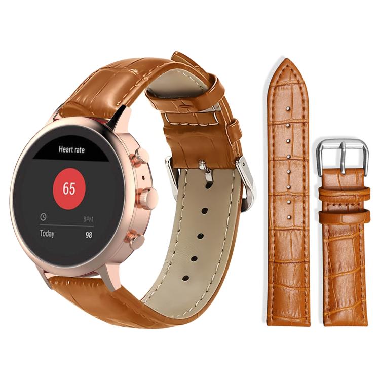 Correa de reloj de cuero con hebilla de pasador y textura de bambú de 18 mm para Fossil Sport/Charter HR (marrón claro)
