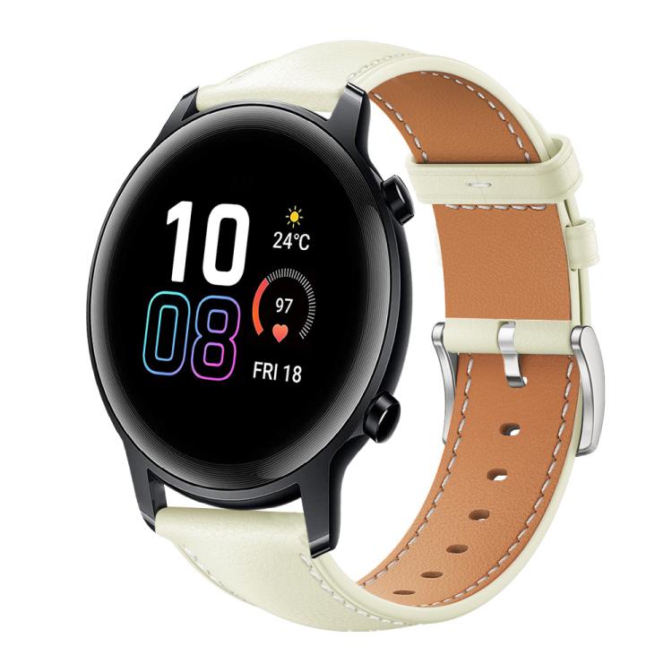Correa de reloj de cuero de grano fino de tiburón negro de cabeza plana xDfind de 20 mm para Honor Watch ES / Magic Watch2 de 42 mm (blanco cremoso)