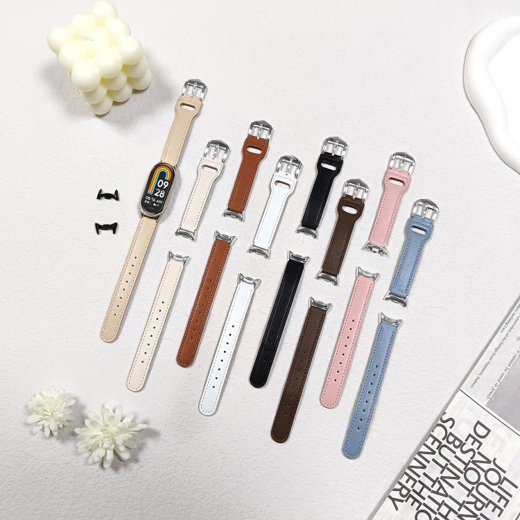 Correa de reloj de cuero de microfibra con hebilla plateada para Xiaomi Smart Band 9/9 NFC/8/8 NFC (rosa)